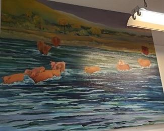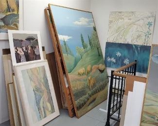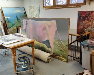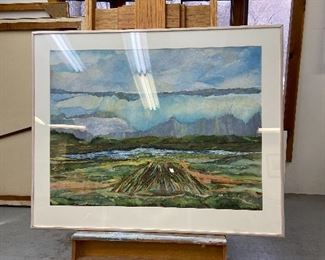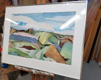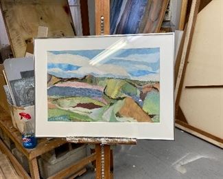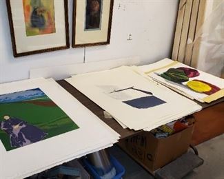 The Art Studio: A great opportunity to buy some lovely paintings. Large Landscapes, Bucolic Scenes, Abstracts, Woodblocks, Etchings, Illustrations, Lithographs, Monotype prints, Collages etc. Some of very large proportions. All by Pat Monson, most signed. See her biography. There is also some other artwork- Prints, Etchings, Botanicals, Photographs by others.