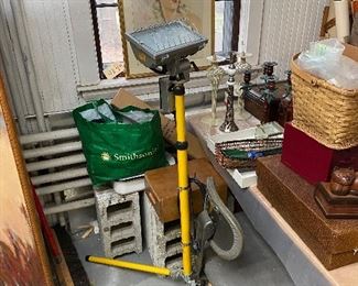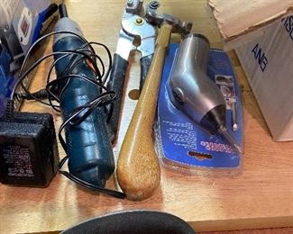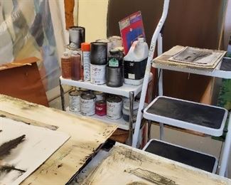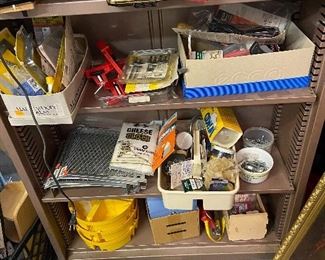 Also Canvases, Frames, Easels, Art supplies, Storage Equipment, Many tools and hardware used in art and crafts. Including many lighting pieces, Esmerilador Angle Grinder, Ryobe Bench Grinder with Supply of pads, Matt Cutters of different types, Power Screwdriver, Bench Vise, Coping saws and other saws, Dremel, Miter, Still going through cabinets and boxes…