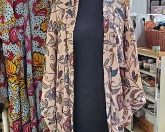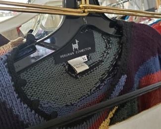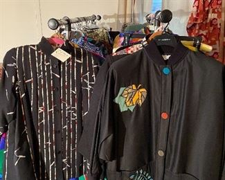 There are a lot of clothes in this sale, some very funky, dozens of pairs of shoes, pocketbooks, shawls, Kimono, ALSO professional racks perfect for a retail store. Holiday décor, household items, decorative accessories, shelving and cabinets.
