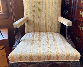 FURNITURE: Fantastic Inlaid Table, Immaculate antique Sofa with carvings, Federal Sofa in pristine condition, Regal Custom Breakfront, Ornate Occasional Tables, 6 Sheraton Style Chairs with well defined fleur de lis backs, Gadroon and inlaid Dining Room Table, Louis the XV Chairs, Hepplewhite style inlaid Console Table, Fantastic Flamed Veneer Mahogany Chest, Other Chests, Bureaus, Beds, Night Stands, Flat top Desk, Paine Governor Winthrop Desk, Small Burled mirror back server, Pair of Danersk Candle Stands, DemiLune Console Table, Antique 2 draw work Tables, Library Table, Wicker Desk, Iron Bench…