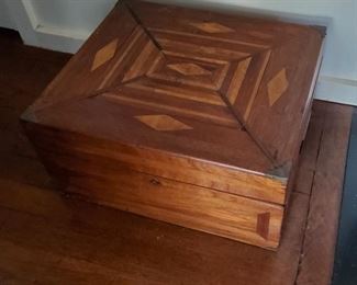 Folk art painted trunk ( in the manner of Cahoon). Brenda Pinardi was a niece of Ralph Cahoon. Some of her works are influenced by Cahoon.