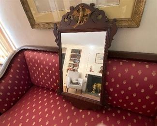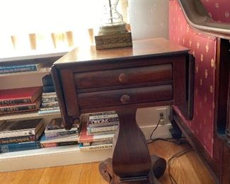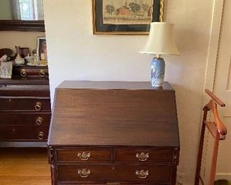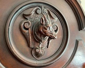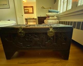 FURNITURE: Dining room Table, 6 lovely antique chairs from the 1800’s, Impressive Marble Top Hunt Table with Carved Game Fowl, and Carved Goat Medallion, Lowboy Server, Inlay Buffet, Asian Carved Nest of Tables, Exquisite Marble top Custom Table from the Boardman Mfg. Co., Several 2 draw work stands, Ball and Claw foot wing chairs, other chairs, Beautifully Upholstered Federal Sofa, Early 2 draw Maple Blanket Chest on Bracket Feet, Occasional Tables, Antique Butlers Desk with Secretary Top, 2 Asian Carved Camphor Chests, Boardman Marble Top Commode, 2 Camel Seats, Slant front Desk, Early 1800’s chest, Tip Table, Beds …