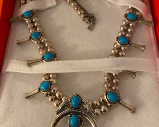 SQUASH BLOSSOM NECKLACES, JADE BRACELETS, PENDANTS. SAILBOAT WATERCOLOR, PUBLIC GARDEN WATERCOLOR,, ROYAL DOULTON CHRISTMAS, ELEPHANT WITH MAN IN CARRIAGE ON BACK. Room size Hooked rug style rug. And more