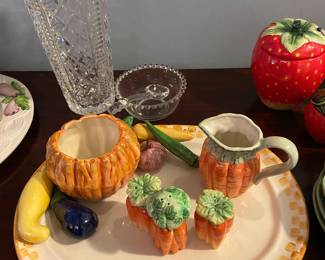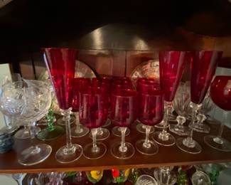 GLASS, CHINA, ETC: So much Glass and china, pottery! We will update as we go through cabinets and boxes in basement. Partial list, Collection of Lynn Chase dishes and animals, Waterford, Limoges Ceralene A. Raynard dinner set for 10, German porcelains, Ironware, Flo Blue, Willow Ware, Depression glass, Pottery Tiles, Perrier-Jouet champagne cooler, Christmas Spode Dinnerware, Ornate glassware of all kinds, …