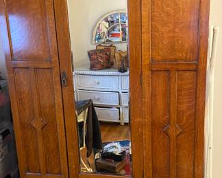 FURNITURE: Antique ornate marble and wood Table, Sofa in custom upholstery, Love seat, Fantastic Asian Style Dining Table with 2 leaves and 8 Beautifully upholstered Chairs, Iron Porch Set with 6 Chairs, Antique Wicker Desk, Wicker Side Table, Antique Corner Whatnot, Gorgeous carved China Cabinet, Fan Carved Cabinet, Iron Brass Bed, Wicker Chair, Wicker Bureau, Side Chest, Vanity, Antique Blind Door Cabinet, Round Oak Table, Rocker, Blanket chest, Oak Wardrobe, Bookcase, Server, Commode ….