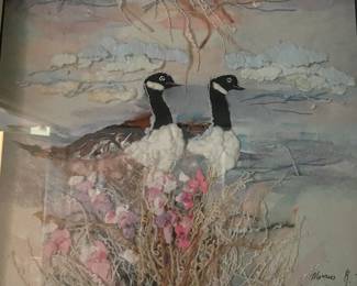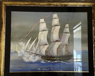 ART: There is a lot of art. Paintings, Prints, Lithographs much is nautical all beautifully framed. Oil Clipper Ship by T. Bailey, clipper ship oil by Robertson Jones, Ocean Waves by Arthur Lindquist, Clipper Ship under full sail by Braun, River Oil by M Lahey, Watercolors by M. Philbrook, Many Mary Vickers painting sand prints some unusual ones on porcelain, “The Mount Vernon” under glass, Fish stamp and Prints, Signed Ogden Pleissner Trout “Hendrkson’s Pool” Print, Nocturnal Beach and waves oil by Edmgy, “The Sea” Watercolor by E. Fifzer, Most unusual framed fabric and needlework goose picture by Tucker, Litho signed William Coombs, Lithos signed Voorhees…