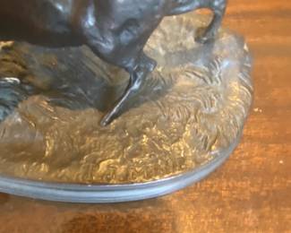 SCULPTURE: Very important unique Diminutive Bronze Statuette of Nathan Hale by Frederick MacMonnies (the life-size Statue by MacMonnies was presented to New York where it stands at City Hall in 1893 as a symbol of courage and sacrifice) . Bronze “The Outlaw” R. Myer, Bronze “Road Agent E. Heikka, Native American on Horse Remington, 2 Elks T. Gechfer, Bronco by Barye, Elk with Tree, Boy with Geese, Pony by PJ Mene, Kauba Indian with Bow, Dog by J. Mene, Diana at the well by J. Yates, 1921. Lorne McCain (Scottish/English). John Willis Good- Horse bronze sculpture “The Tired Hunter”.